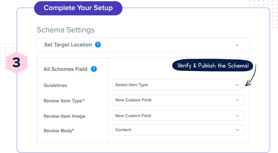 对于很多人而言,Schema 标记可能非常复杂,但 Schema Pro 通过用户友好的界面、无编码要求和简单的 3 个步骤即可完成。